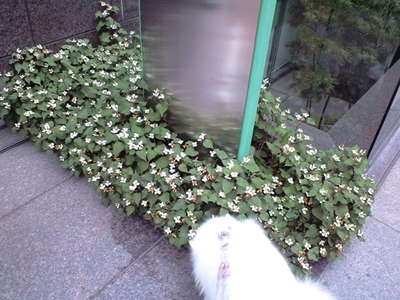 なんと、キレイなビルの植え込みにドクダミの寄せ植えを発見しました。