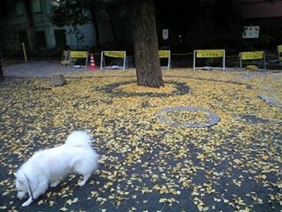 さてさて、近所の公園は銀杏の葉が美しく散っていました。