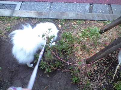 シャンプーした翌日だったので、さすがに朝のお散歩は中止しました。