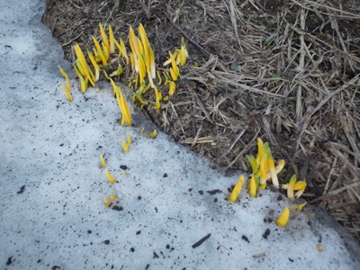 (水仙の芽ですかね・・・あちこちにありました)